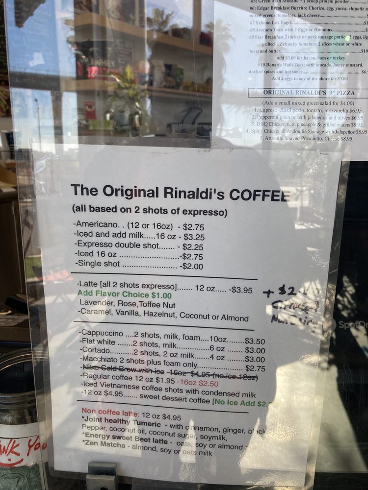 “ Great, very casual breakfast and lunch restaurant very close to LAX. We arrived home very late and stayed overnight at the LAX Hyatt regency. The Original Rinaldi's is on the same side of the street and less than one block from the Hyatt Regency. We did not want an expensive hotel breakfast. Walked in to Rinaldi's and got a very warm welcome. They have different coffees so we tried the iced Vietnamese coffee in recognition of our completed trip. The coffee was terrific. Breakfast items were fresh, tasty, and healthy. Got a bottle of Langer's OJ to wash it down - cold and refreshing. Chatted with the nice lady that took our order. Excellent way to enjoy a reasonably priced breakfast or lunch near the airport. Or, not a bad idea to pre order food and take it on your flight. ”